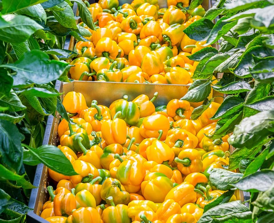 After being harvested, the sweet peppers are first sorted by size, weight and colour. Many sweet peppers are sold loose in boxes or crates and are transported directly to the customer.