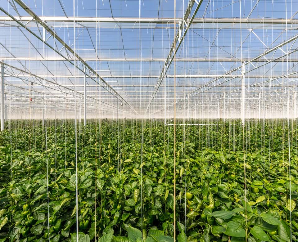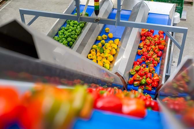 - Fully automatic harvesting trolleys navigate the concrete paths to the processing hall. Once they arrive at the sorting room, the trolleys are stored in a buffer, one above the other, after which the sweet peppers are sorted and prepared for the customer.