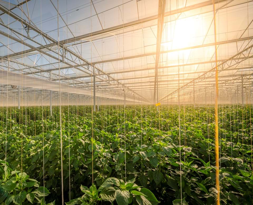 Our greenhouses use modern technology to create an optimum greenhouse climate, e.g. the right type of screen cloths, rock wool mats, diffused glass and liquid fertilisers.