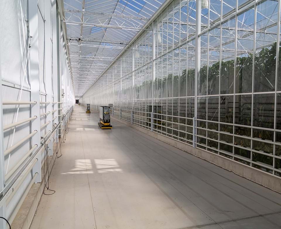 - The trolleys used by our greenhouse employees and the harvesting trolleys automatically move along the paths at the required speed and lift our employees to work at height.